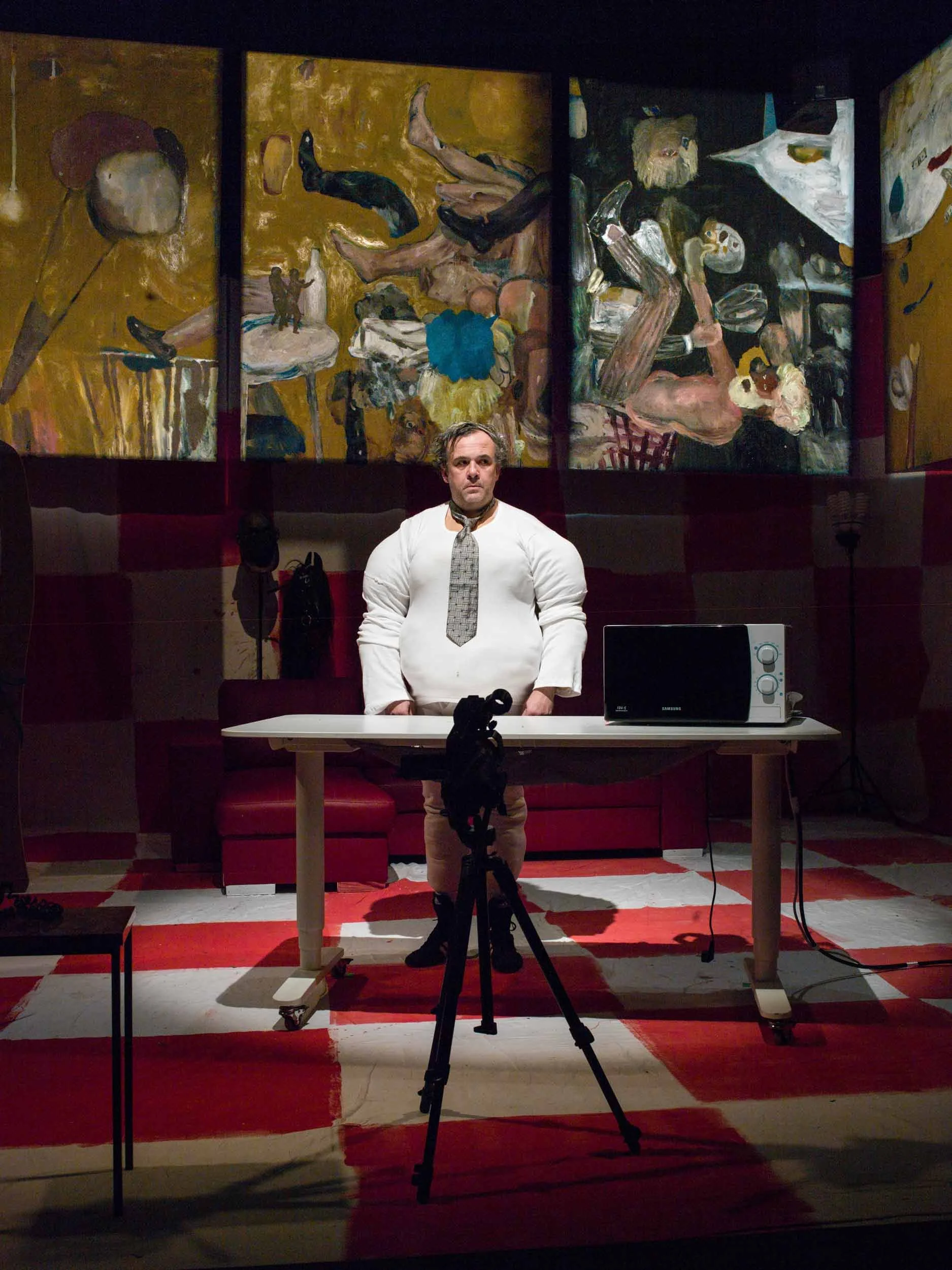 Timon is a performative essay exploring the deep seated structures of patriarchy and its emotional repercussions on the male psyche. Using the classic drama Timon of Athens as a conceptual foundation, the performance delves into the devastating collapse of a carefully curated network of political and economic male alliances. When this transactional system inevitably fails, the protagonist retreats from society, engulfed by profound disappointment and absolute speechlessness. The piece urgently questions the extent to which our contemporary understanding of masculinity is entwined with violence and hatred, forces that ultimately drive Timon toward absolute self destruction.